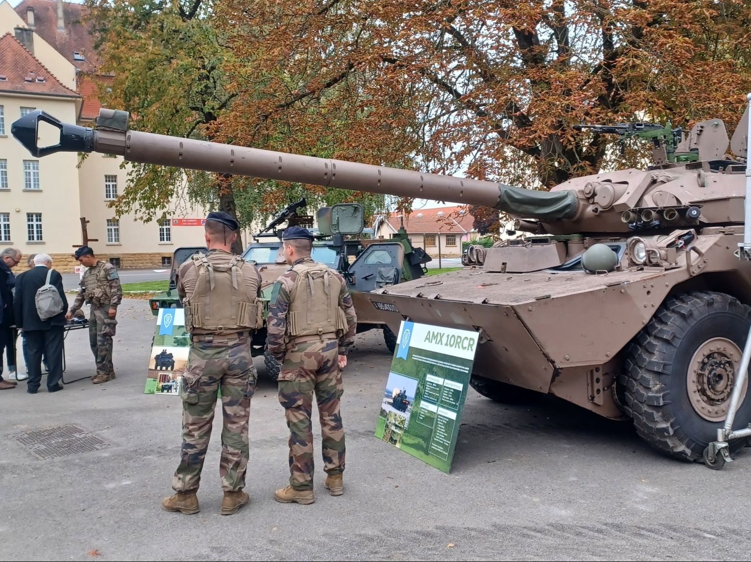 La visite a porté sur la présentation des missions du régiment, particulièrement centrées sur la reconnaissance et la recherche d’informations lors des conflits, mais aussi la démonstration de matériels du régiment tels que l’AMX 10RC, un VBL et de matériels légers comme les drones.