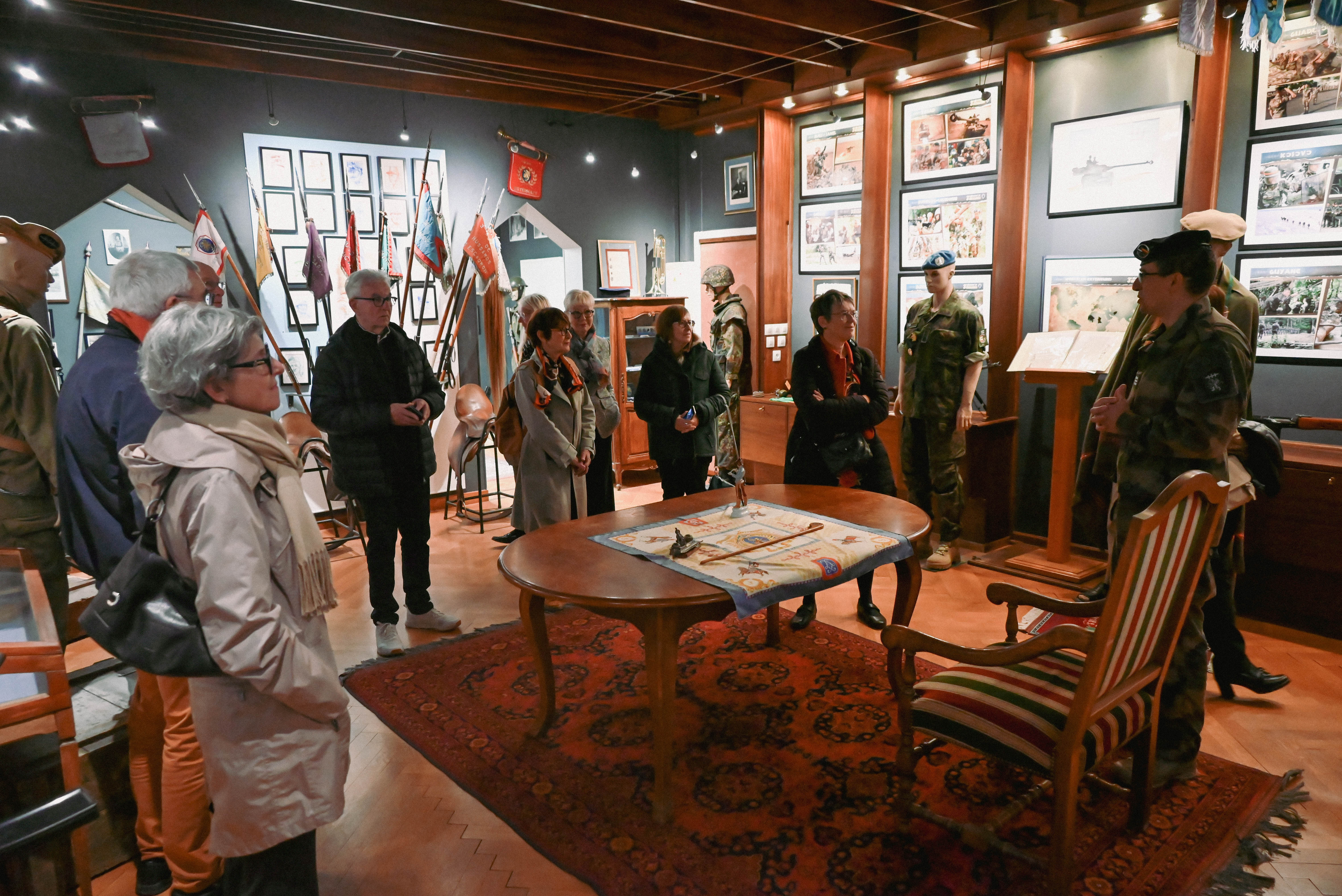 Les compagnons ont bénéficié d’explications exhaustives, y compris dans la salle d’honneur du régiment, un véritable musée retraçant l’histoire du régiment fondé en 1764 et qui s’est illustré depuis dans tous les grands conflits, de Valmy en 1792 à la Marne en 1918 et les combats des Vosges et d’Alsace en 1945 et aujourd’hui en opérations extérieures.