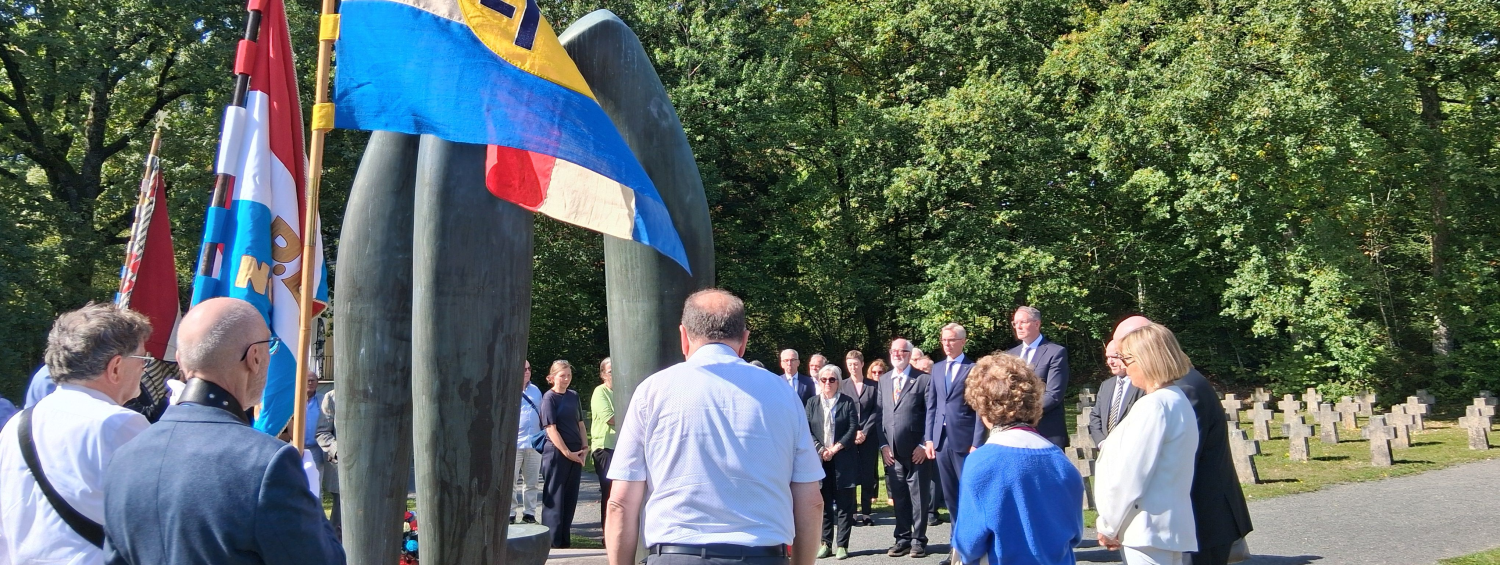 En présence de Alexander Roger Schweitzer, ministre-président de Rhénanie-Palatinat et de Yuriko BACKES, ministre luxembourgeois des transports, de très nombreux descendants des victimes ont rendu hommage à leurs compatriotes morts des traitements inhumains qui leur étaient infligés ou qui ont été froidement exécutés à Hinzert, lieu d’enfermement des Luxembourgeois opposés au régime nazi.