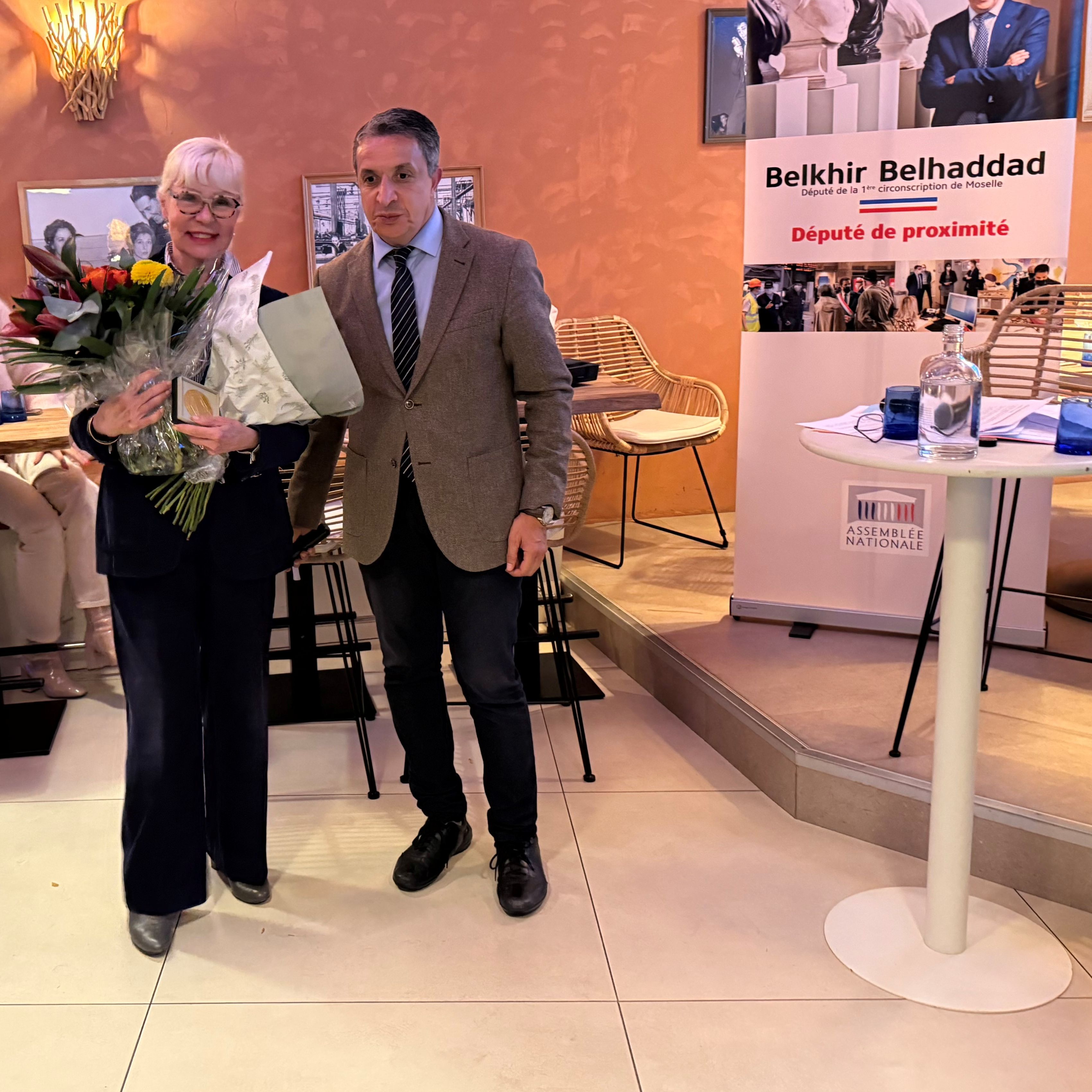 Notre présidente Anne-Marie Le Pense et notre compagnon Maurice Grunwald du secteur de Thionville  ont  été récompensés le 25 septembre par la médaille de l’Assemblée nationale reçue des mains de Belkhir Belhaddad, député de Moselle. Cette distinction met à l’honneur notre section pour les actions menées depuis une dizaine d’années  envers la jeunesse.